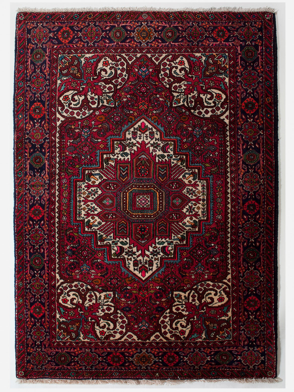 Alfombra anudada artesanalmente por nómadas y semi-nómadas, en lana de muy buena calidad con urdimbres y tramas de algodón.