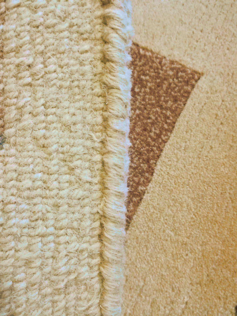 Algunas de estas piezas, para darles un acabado mas actual, no suelen tener flecos pues la urdimbre se teje y cose por la parte trasera, o se corta y se realiza un ribete manual.