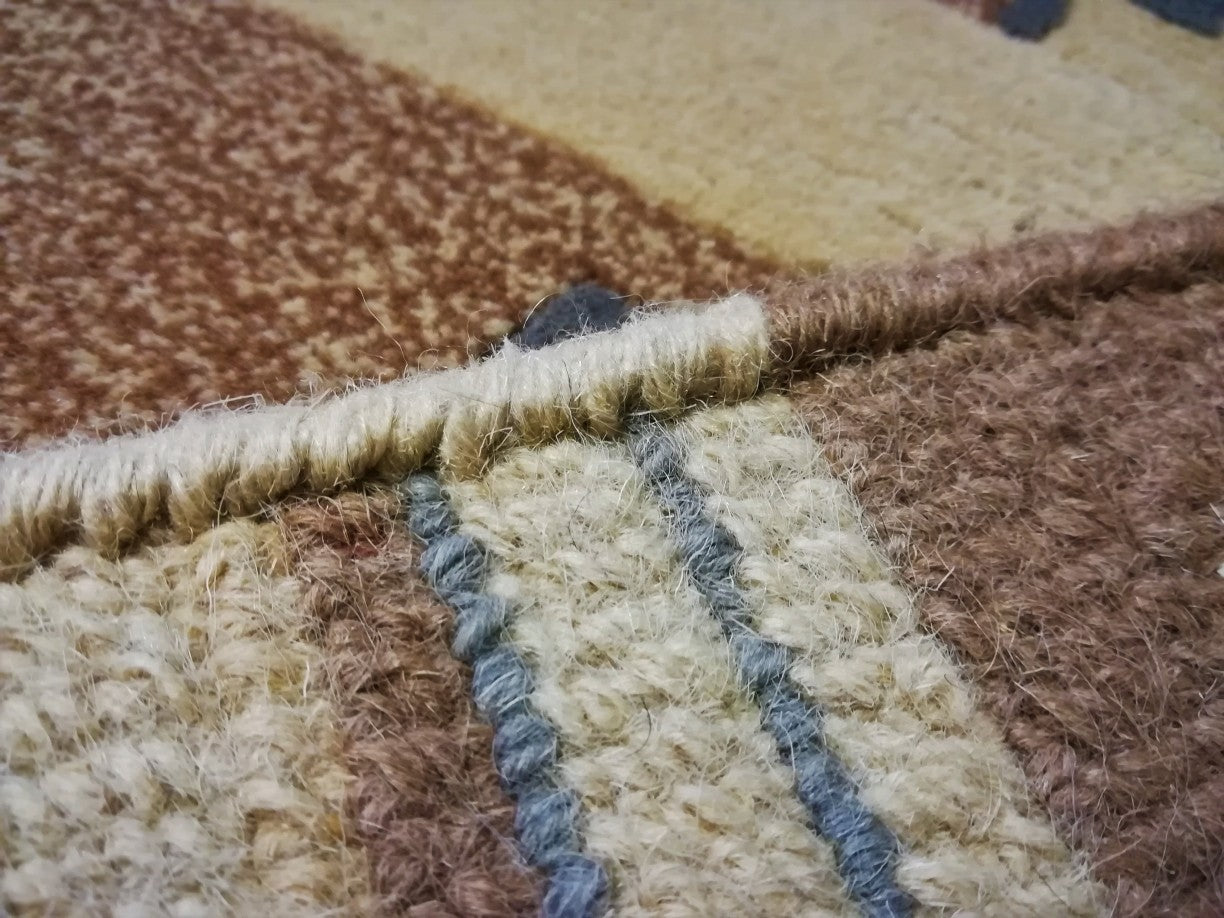 Alfombra india que ha sido anudada con lana de Nepal. Es una lana de muy buena calidad, la textura de la alfombra es gruesa, con un diseño moderno y sencillo que se puede adaptar a decoraciones modernas, juveniles o vanguardistas.